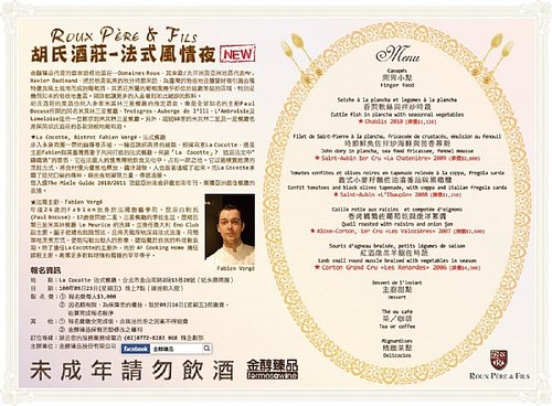 【ROUX PÈRE & FILS胡氏酒莊‧法式風情夜】