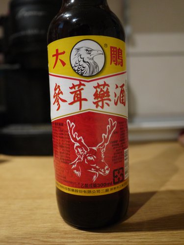 成分:黃耆、肉桂、黨蔘、生地黃、防風、鹿茸(這有點誇張)…等22種中藥材浸漬而成。