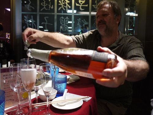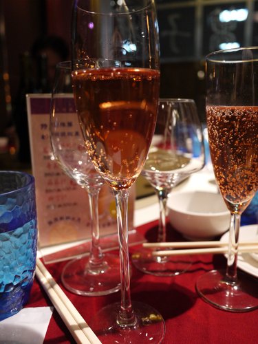 今天的江浙菜並沒有照原本預期的順序出菜,所以就依照唐老師安排的順序來品酒。第一支粉紅氣泡酒,就由唐老師為今天的同學會揭幕….