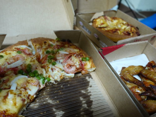 今日搭配的菜:與親愛的家人在家品嚐,就吃必勝客海鮮Pizza嚕~~