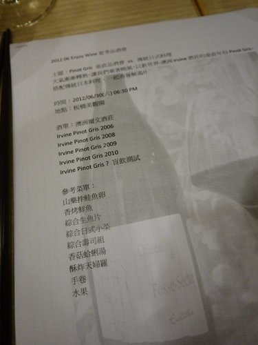 主題:Pinot Gris垂直品酒會與傳統日本料理