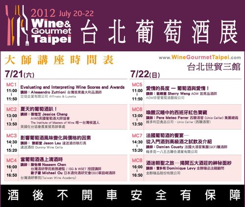 詳情請參考官網 http://www.WineGourmetTaipei.com 或 加入「台北葡萄酒展」Facebook粉絲團,隨時