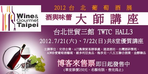全台規模最大的國際性葡萄酒產業專業級展會《Wine & Gourmet Taipei 2012 台北葡萄酒展》將於