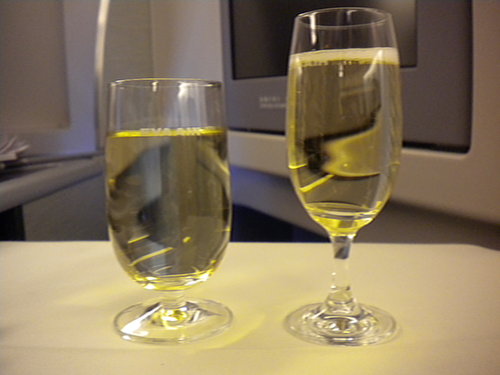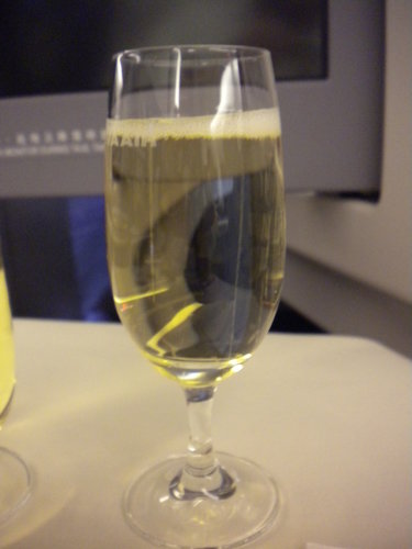 在飛機上無法清場照單張照,所以直接來一張4杯大合照,右1香檳,右2白酒,右3勃艮地紅酒,左1西班牙紅酒。