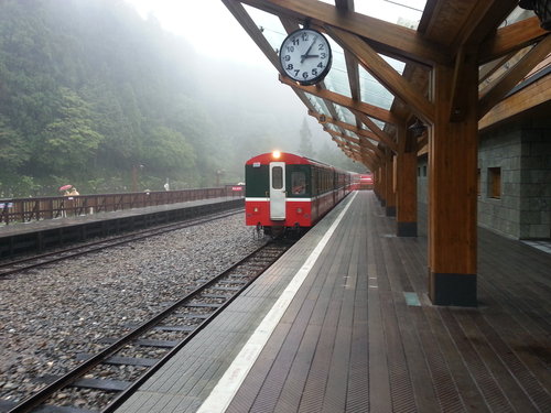 完成登頂下山,搭上末班沼平–阿里山火車。