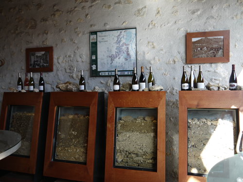 Henri Bourgeois 是個有意思的酒莊,或許經常接待 Tour 的關係,店裡陳列了許多他們所擁有的葡萄園的土壤剖面圖,讓人看了非常的感動。不同的土壤組合,種出不同的葡萄園風土 (Terrior),釀出的葡萄酒味道完全不同。