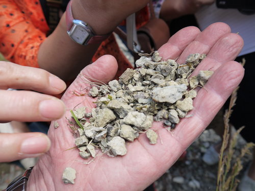 轉個彎來到了另一面,這裡1600萬年前是海底,透過地殼變動才變成陸地與山丘,由於地殼變動的過程中有地震,所以土石交混,土壤裡還可以看到生蠔與淡菜的遺蹪。