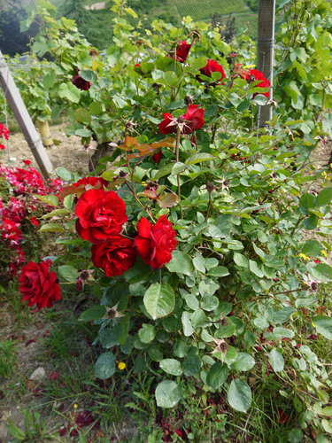 葡萄園旁邊都會種一些玫瑰花,用來檢查土壤是否生病;當土壤生病的時候,生性脆弱的玫瑰花會先死掉,這時主人們就會知道該做出相對應的處置。