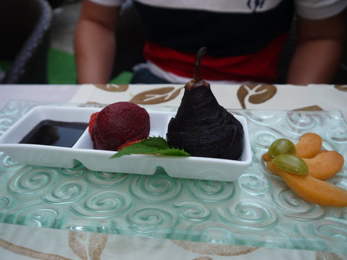 甜點–醃製西洋梨與冰淇淋