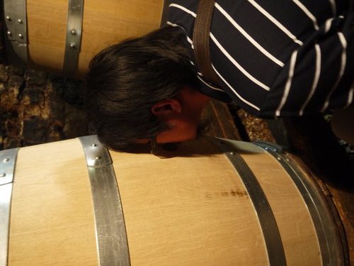2012年的酒,尚未裝瓶,仍靜靜躺在桶裡持續發酵,讓我們一行認真的學生打擾了。