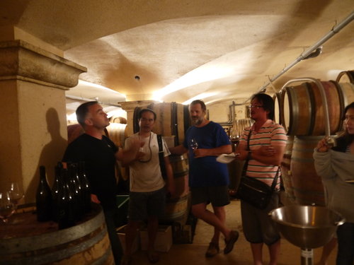 忙碌的Nicolas在帶我們這些台灣人參觀他的釀酒廠後,終於有空接洽一直在旁等待的買酒商了(後面穿粉紅色衣服先生),Bye bye~