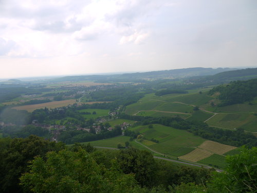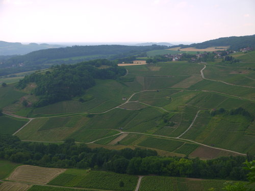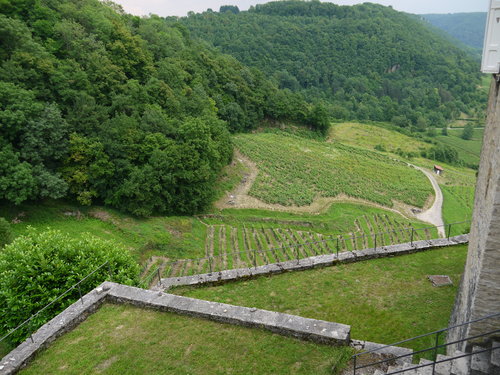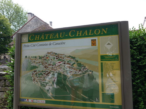 Jura區特產~黃酒與麥桿酒,也是Jura最具特色的代表,而我們今日用餐的村莊Château Chalon,則是Jura黃酒 的Grand Cru區,在Jura一共有3個酒莊擁有Château Chalon。Jura由於是山區,氣候特色為夏天熱,短,偶有小雨,九月是全年的關鍵,如果九月下大雨,則該年的葡萄無法制成黃酒。