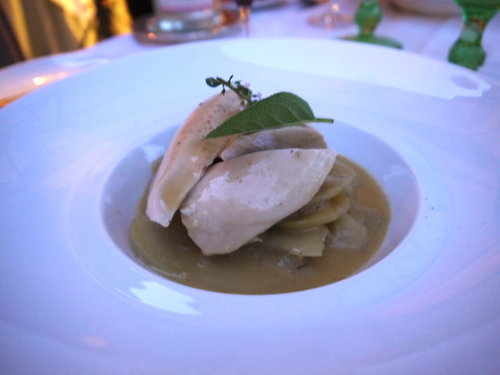 返回位於Port Lesney的Château de Germigney飯店,夜幕以近低垂,享用上午就order好的Jura名物:燉公雞晚餐。