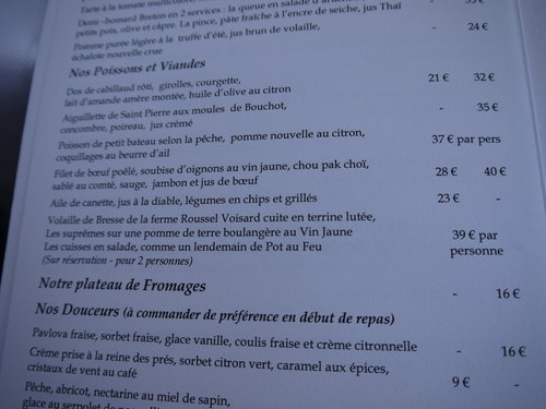 主角:燉公雞。需經4小時以上以黃酒入菜慢火精燉,必須事先預訂,兩人一隻,每人€39。