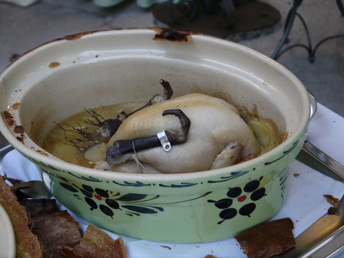 返回位於Port Lesney的Château de Germigney飯店,夜幕以近低垂,享用上午就order好的Jura名物:燉公雞晚餐。