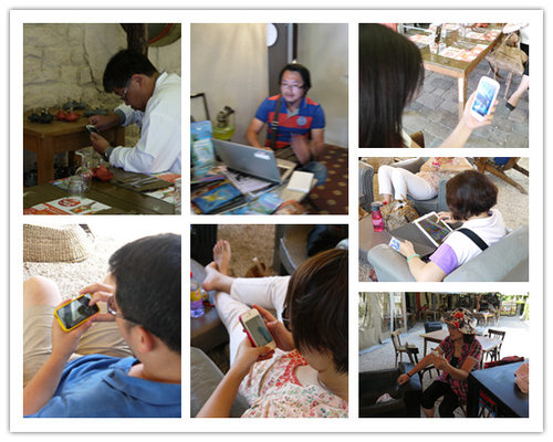 一行離不開3C產品台灣人,在意外行程Delate的午后,故作悠閒地等待~~