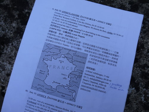 來張Diana自製的行程說明照片:原本的Annecy行程,無緣拜訪的釀酒師Louis Magnin…
