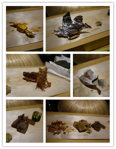香物~味噌牛舌/手工風味腰果/柚香大根/金山寺味噌/蒟蒻辛味煮/榨菜干貝