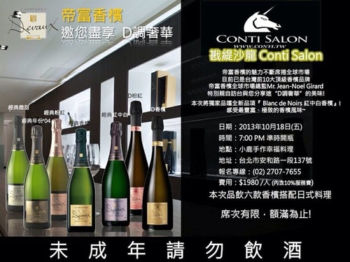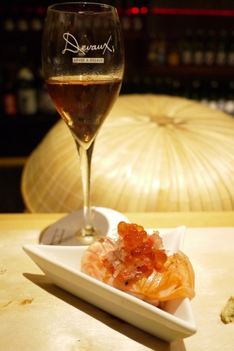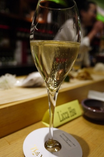 這是場超值的餐酒會,七款香檳搭配手作日本料理,還有特別的Blanc de Nior(紅中白香檳)!Griselda介紹,LULU,Licca,Joey與Enjoy Wine眾好友齊聚參加,可憐的Jerry店忙不能來,派了蔣臧畫代打(好幸福的代理),我們在二樓歡聚暢飲,一樓也巧遇多位酒友呢!