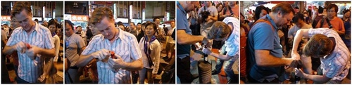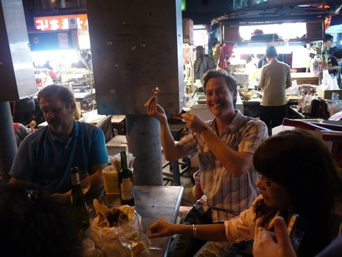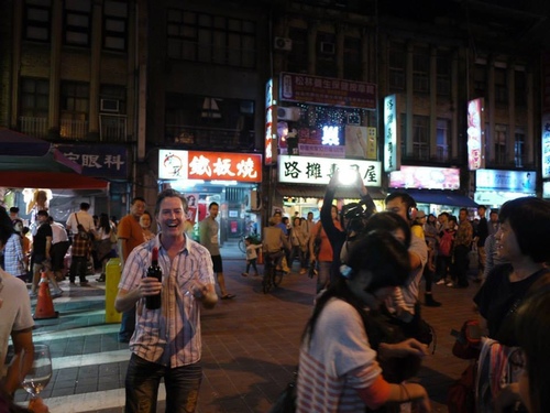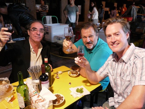 夏克立來到!帶瓶紅酒,因為他說他老爸無論吃什麼都是搭紅酒!(波爾多的紅酒,安全牌!但夜市不好搭~)