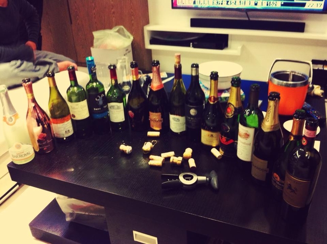 今日的party是以每人準備一道菜的方式來慶祝,JasonJason己經先備下了不少氣泡酒來旺一下新居。