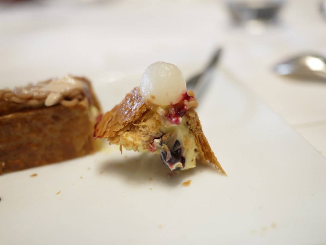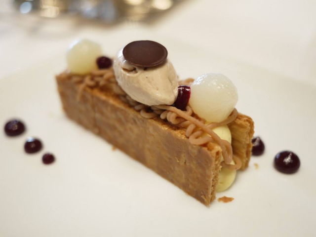 甜點1:栗子冰淇淋配萊姆酒奶油、酥餅及黑醋栗汁