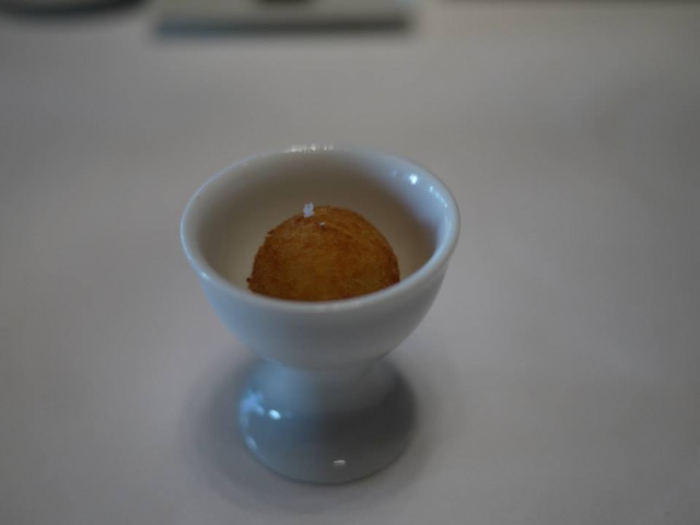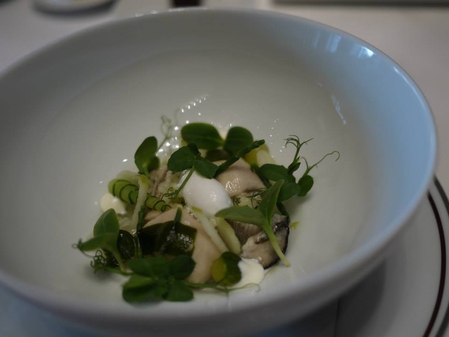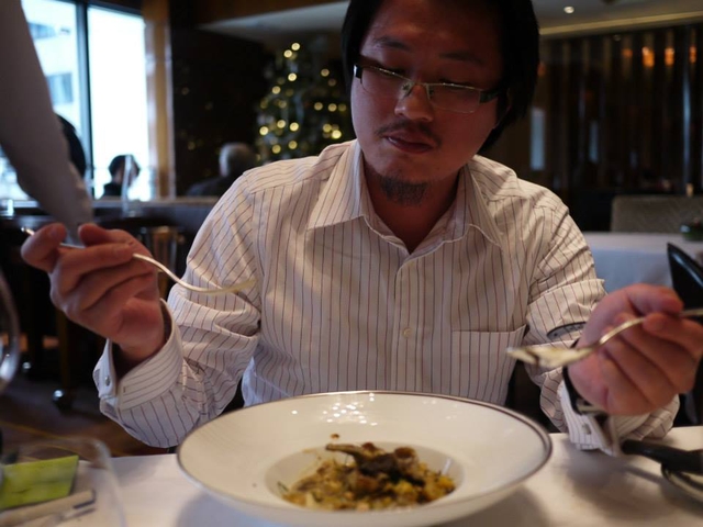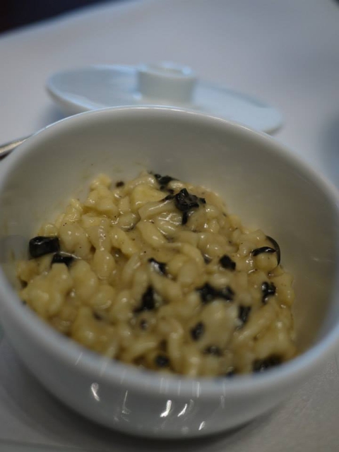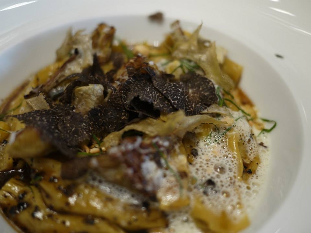 主餐Andres Lee:普羅旺斯朝鮮薊義大利餃子配特製初榨榛子油及帕爾馬乾酪泡沫、佐桌邊切成薄片的冬季黑松露(每克HK35,加了2克)