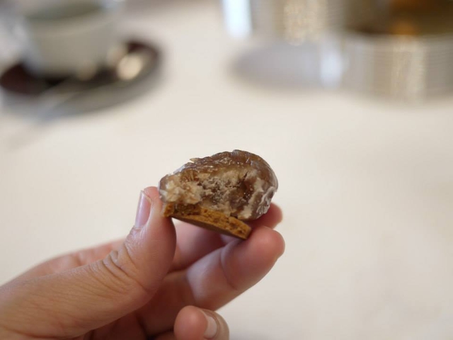 酥脆似台灣品悅糖現做甜點,但滋味不同(剖面圖)