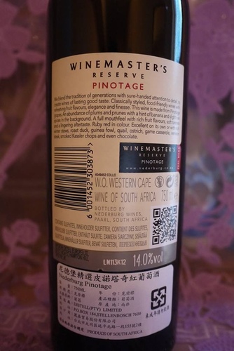 因為一陣子沒在家裡喝紅酒啦~就從酒櫃裡挑出這支,喝起來感覺濃郁帶勁的南非酒!