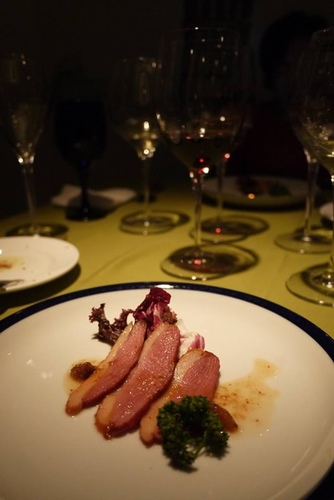 紅酒佐鴨胸為前菜