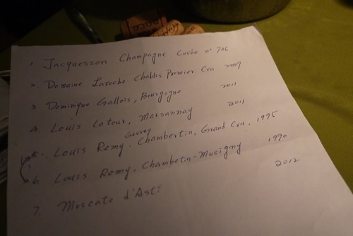 依據之前提供的酒單, Griselda與別盧Andy精心討論的特別菜單,沒有Menu。這些菜單,搭配來自法國勃根地的酒,將是最美妙的搭配~~