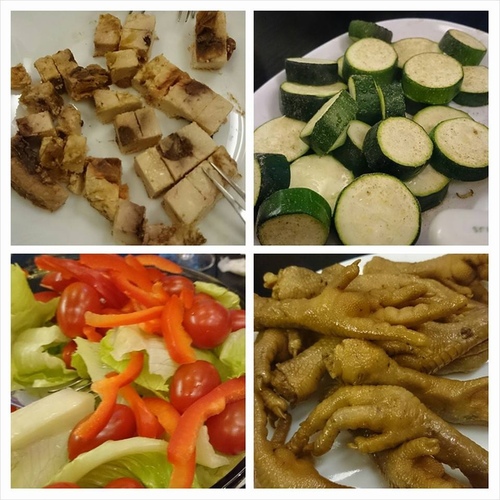 (前菜:椰香與果香味乳酪、烤桔瓜、綜合鮮蔬、滷雞爪)