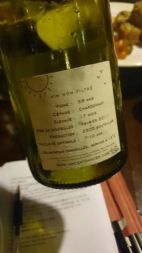Vincent Dancer的白酒,去年醉飲法國拜訪過的布根地釀酒師,酒如其人,溫柔細緻,感謝Judy割愛分享如此美酒~