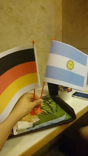 法皮德骨的Diana當然絕對是支持德國,但小孩是挺阿根廷,所以我們桌上兩面旗!