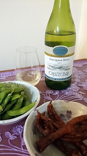 2014.07.29炎炎夏日夜晚,將香港帶回的New Zealand Oyster Bay打開來,冰冰涼涼夏夜喝正好^^。