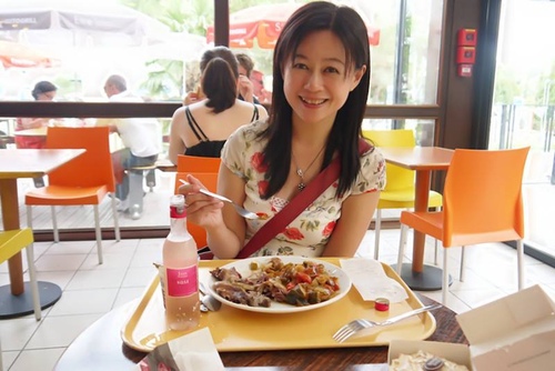 高速公路休息站午餐,一連吃了二餐的水果、生菜、簡餐,這裡終於有”肉’啦~~