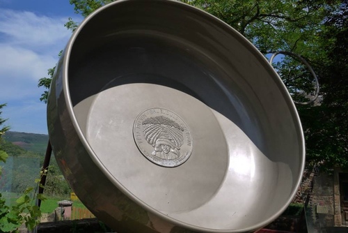 特別的大銀碟(不確定材質),本地慶典上喝酒,要用這樣造型的小銀碟喝酒,裡面的圖樣代表著葡萄豐收的喜悅~