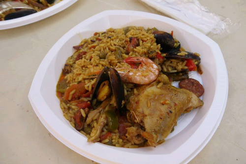 澎派的現場料理:先煮生米->鋪上滿滿豐盛的食材->蓋上鋁箔燉煮
