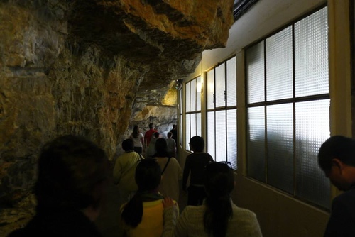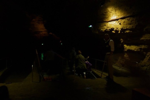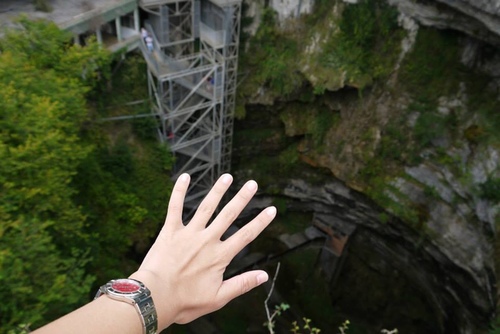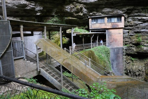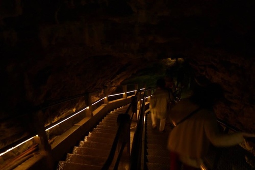 以上照片只在深坑入口處,我們將搭升降梯往下,穿過泉水廳與泉水坑道,抵平面河時改由搭人供撐船(像威尼斯人,於黑暗的洞穴中),經過雨湖與鱷魚通道,抵達大圓頂聽,再步行約5KM欣賞參觀。於此敘述是因為搭上船後的一切都禁止拍照了!