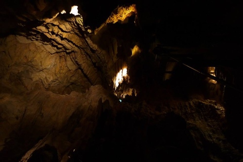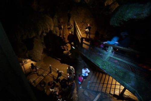 航行到水渠道盡頭,下船步行,欣賞到全歐洲最大的地底鐘乳石穹頂與土耳其綠的美麗湖水,徒步上下參觀約10層樓,驚嘆大自然的美妙,但不能用相機記錄,來過看過,這段旅程太值得了~~