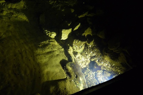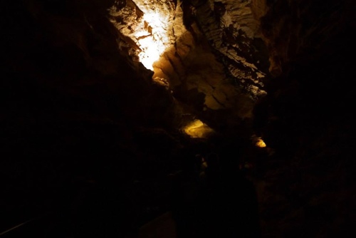 再往下,溫度下降,大家紛紛穿上遇寒外套,開始到看不到陽光的地底