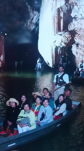 我們搭乘小船航行5公里, 石穴裡的碧綠鐘乳石水道優美壯麗。但地表之下不能拍照,買張明信片紀念嚕~