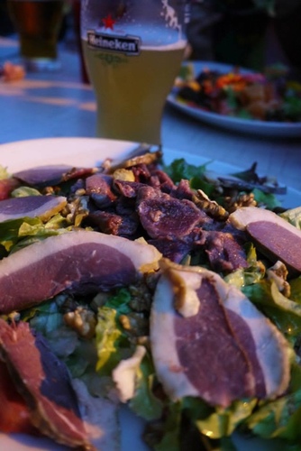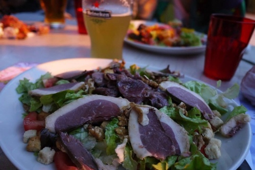 在觀光勝地Gouffre de Padirac 街邊而坐,品味輕食晚餐(也是法國最後一頓餐酒)