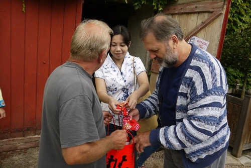 我們送給主人來自台灣的禮物:在台北車站微風店賣的中國風小筆記本,法國非常喜歡)