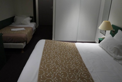 只是法國飯店房間不大,三人床就加在幾乎是走道上