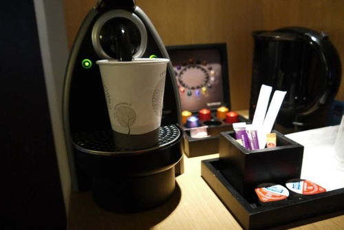 房間裡還不錯的義是膠囊咖啡機,讓連早餐都被取消的我還能有個清醒的早晨