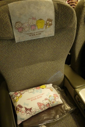 餐酒畢,欣賞一下Hello Kitty專機與菁英艙,備品與設計,小物,都有Kitty風~