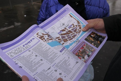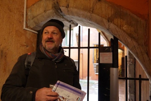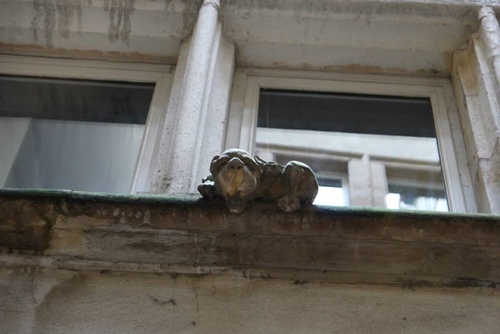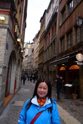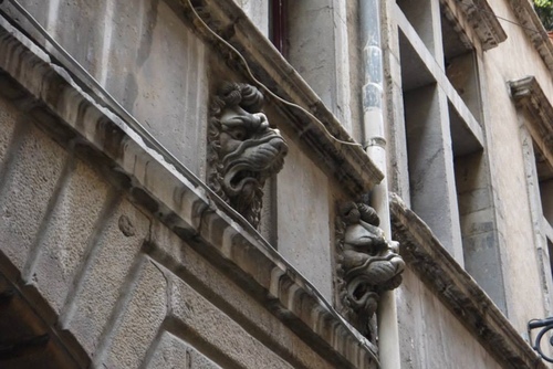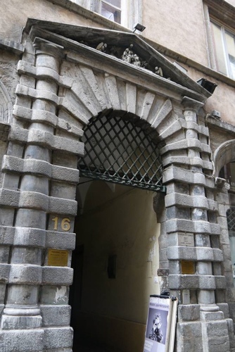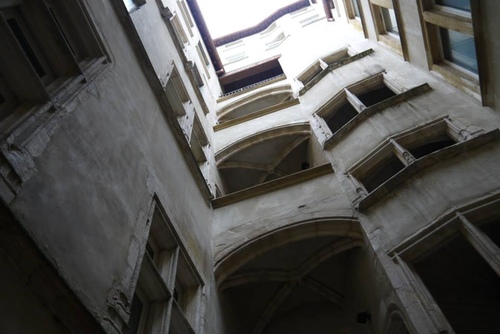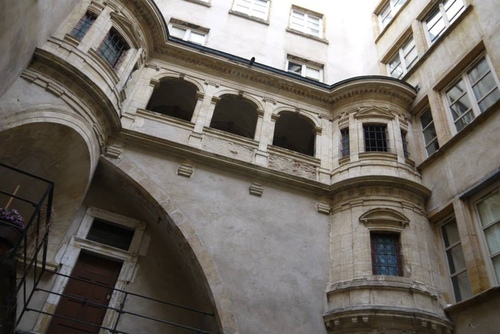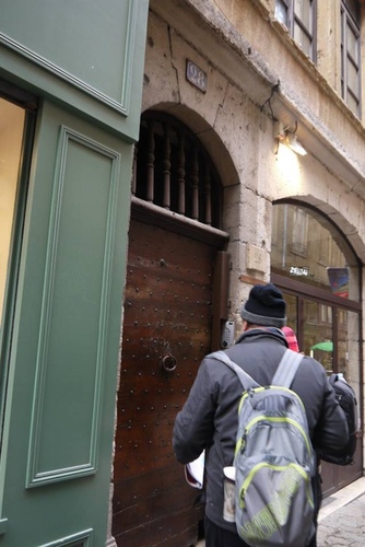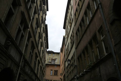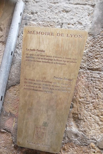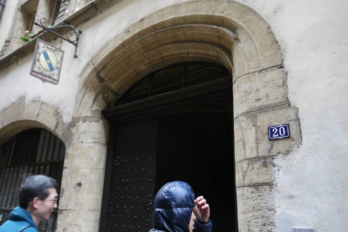 導覽介紹:16~17世紀,文藝復興時代,里昂絲綢業來到高峰,許多聯繫房屋及街路的廊巷(Traboule)興建,Traboule源自於拉丁語Traboulare,意思是to walk through,指橫越房子的走廊通道,讓絲綢在運送過程中不被雨淋濕。許多通道已被拆除,但里昂目前仍保有300個,主要在舊城區,最長的一條位於Rue du Boeuf的27號和Rue Saint-Jean54號之間。由於通道屬於私人所有,里昂市政府為了讓遊客一窺廊巷奧秘,特別選定部分廊道在特定時間開放參觀,但是要輕聲細語喔!!