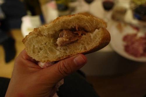 晚上,我們到店家買肉醬罐頭與麵包,再買兩支Serge推薦的本地酒。