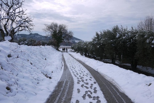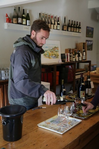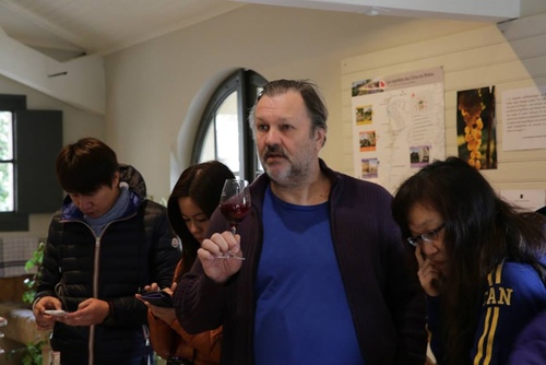 沿途覆雪葡萄園。覆雪對葡萄是好事,可以去除病蟲害,如果冬天太熱,隔年農藥要多放。這裡產dry的(不甜的)Muscat。莊主釀酒師說本地很少下雪,今天非常特別!
